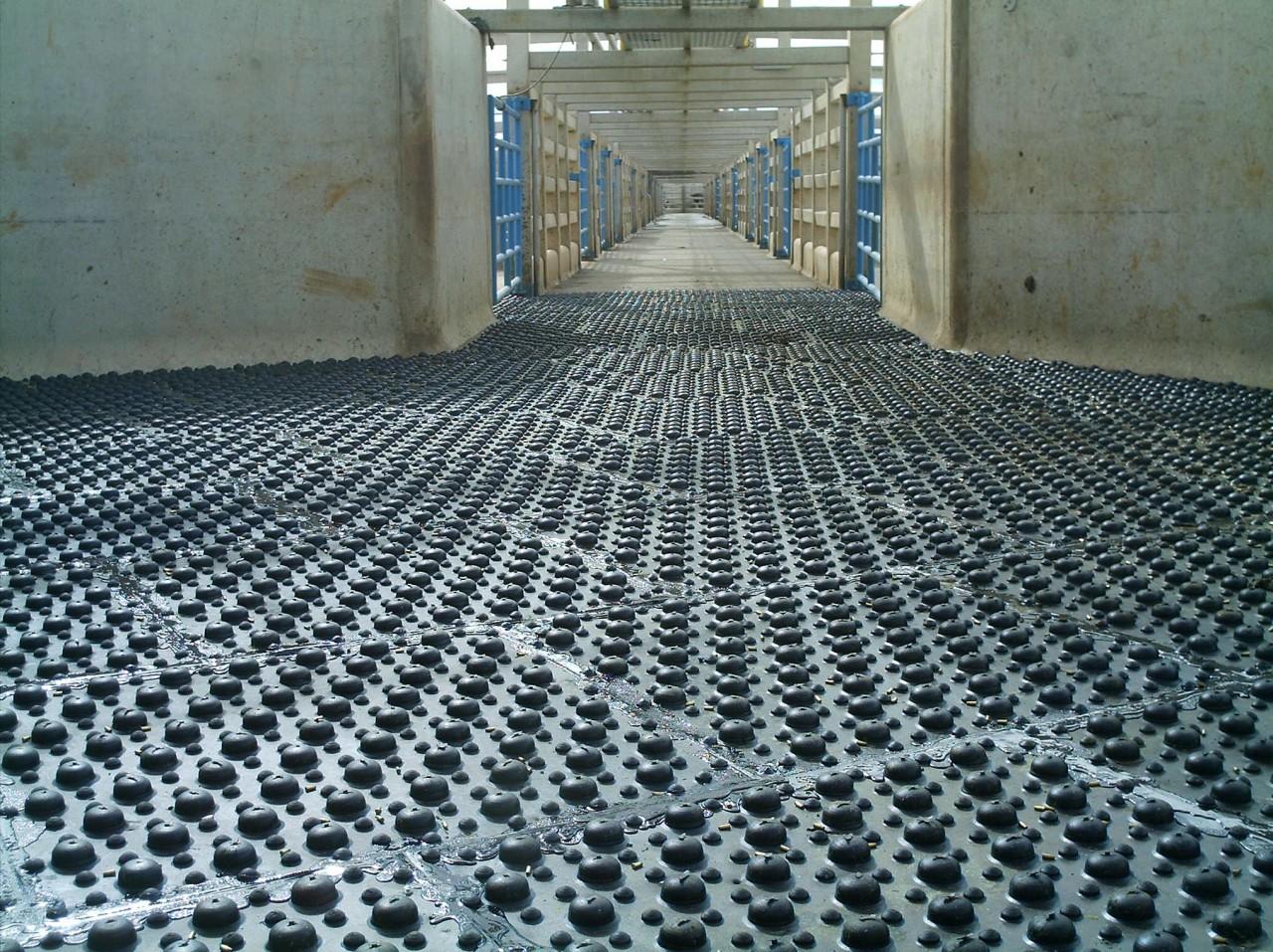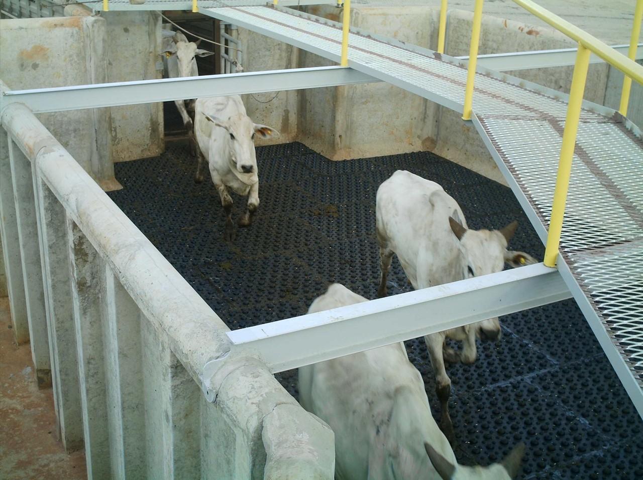 Este outro tipo de face corrugada foi especialmente desenvolvida para revestimento de pisos onde necessita-se de maior segurança para o animal, ou seja, rampa de embarque, desembarque de frigorífico e rampa de elevação para carreta de dois andares.